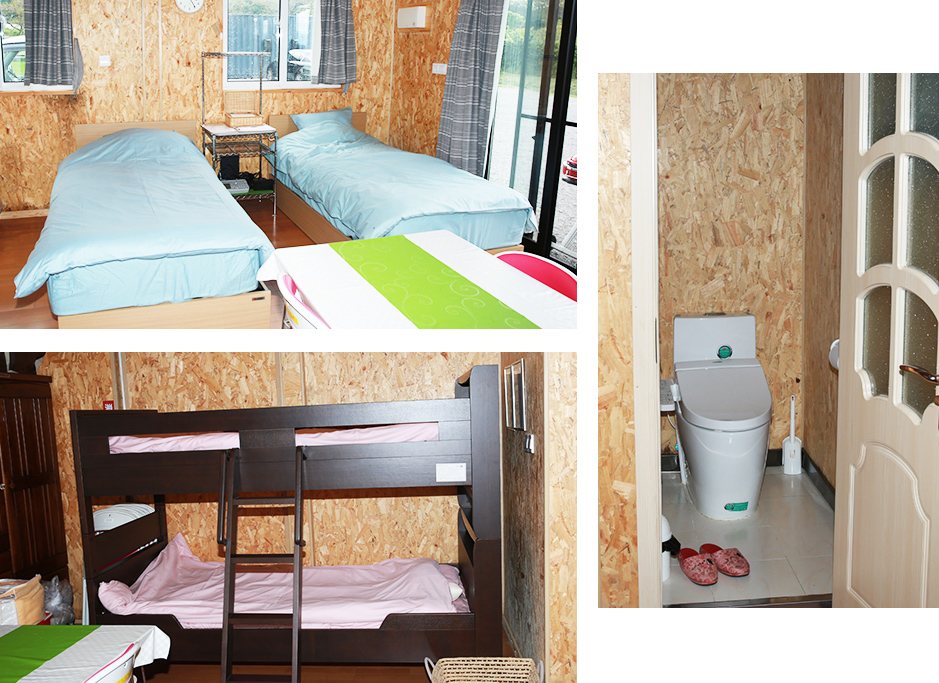 (シングルベッド2台、2段ベッド1台、キッチン、トイレ付き)(バス、洗面所共用)